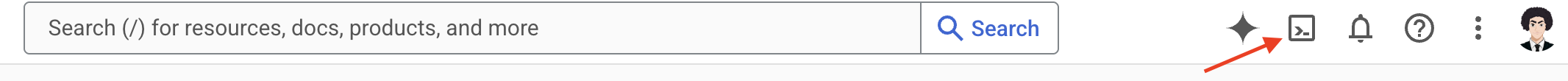 Activate your Google Cloud Shell (click the terminal icon in the top-right corner of the console). This will launch a temporary VM where Docker and Google Cloud CLI are pre-installed.